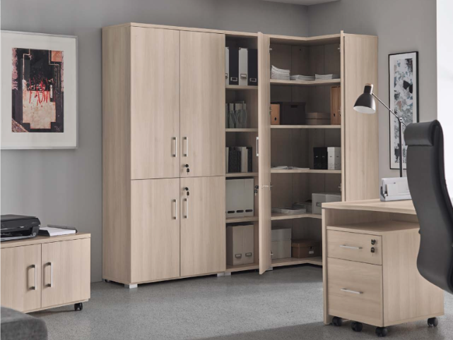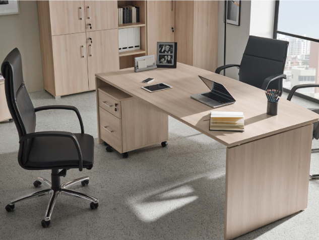 Conjunto de muebles oficina de la serie Basic, parte del catálogo OrtsOffice17. diseñado y fabricado por Muebles Orts.