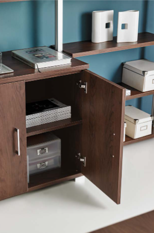 Conjunto de muebles oficina de la serie Nova, parte del catálogo OrtsOffice17. diseñado y fabricado por Muebles Orts.