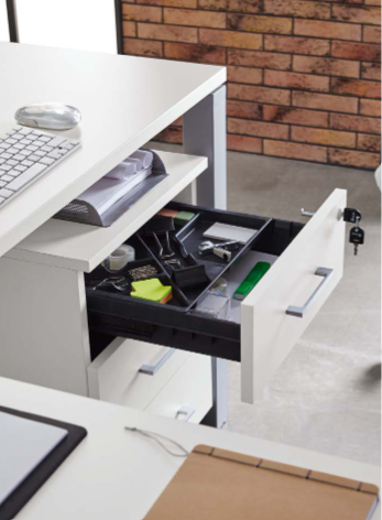 Conjunto de muebles oficina de la serie Nova, parte del catálogo OrtsOffice17. diseñado y fabricado por Muebles Orts.