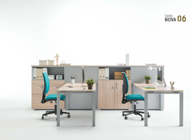 Conjunto de muebles oficina de la serie Nova, parte del catálogo OrtsOffice17. diseñado y fabricado por Muebles Orts.
