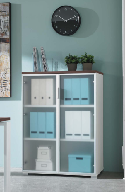 Conjunto de muebles oficina de la serie Quadro, parte del catálogo OrtsOffice17. diseñado y fabricado por Muebles Orts.
