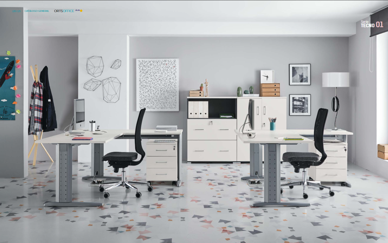 Conjunto de muebles oficina de la serie Tecno, parte del catálogo OrtsOffice17. diseñado y fabricado por Muebles Orts.